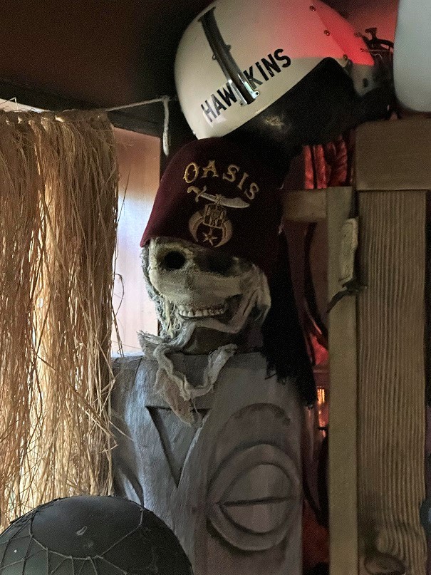 Another member of Will’s family, his uncle, Bill Hawkins, had served during the Vietnam war (in Alaska!). It was he who had first introduced Will to tiki culture. There is a photo of Uncle Bill on display in the bar along with the actual helmet he was photographed with.