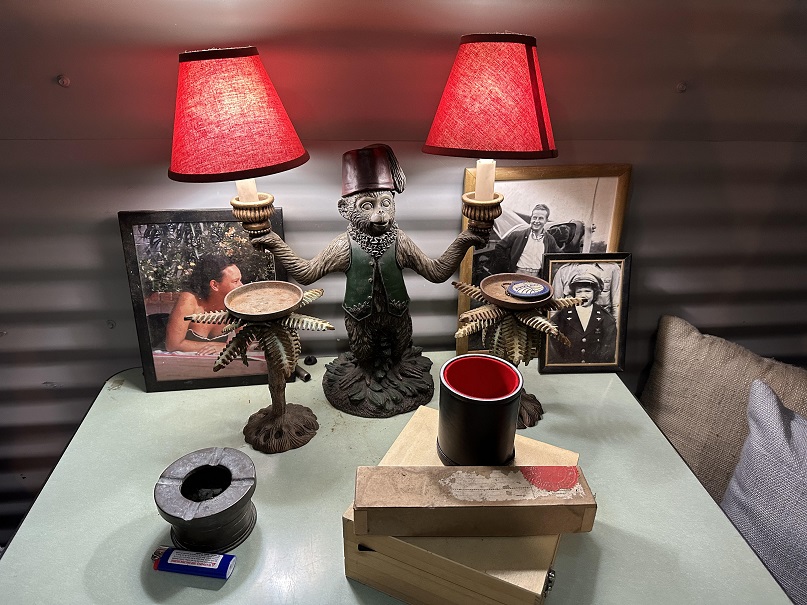 In addition to relocating the tiki bar to the island, family plays a large part in the bar’s charm to Will and Dawn. Besides Will’s grandfather and uncle, his grandmother, Anita Hawkins (an early flight attendant on DC-2s and DC-3s), and Dawn’s father, William “Nick” Nickerson (a merchant marine during the Vietnam war) are also remembered fondly through photos and memorabilia on display.