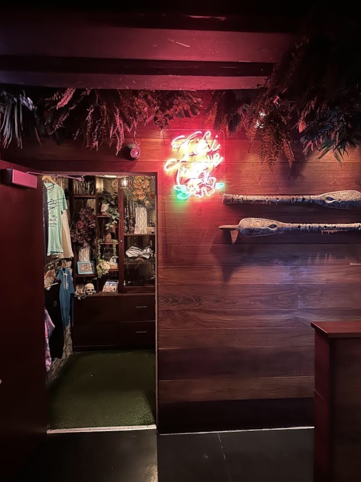 At the hostess’ desk, we were told that we’d have to wait a few minutes as our table wasn’t quite ready. That was fine. It gave us a chance to preview the little closet-sized gift shop, Tiki Trove, right there in the small lobby area.