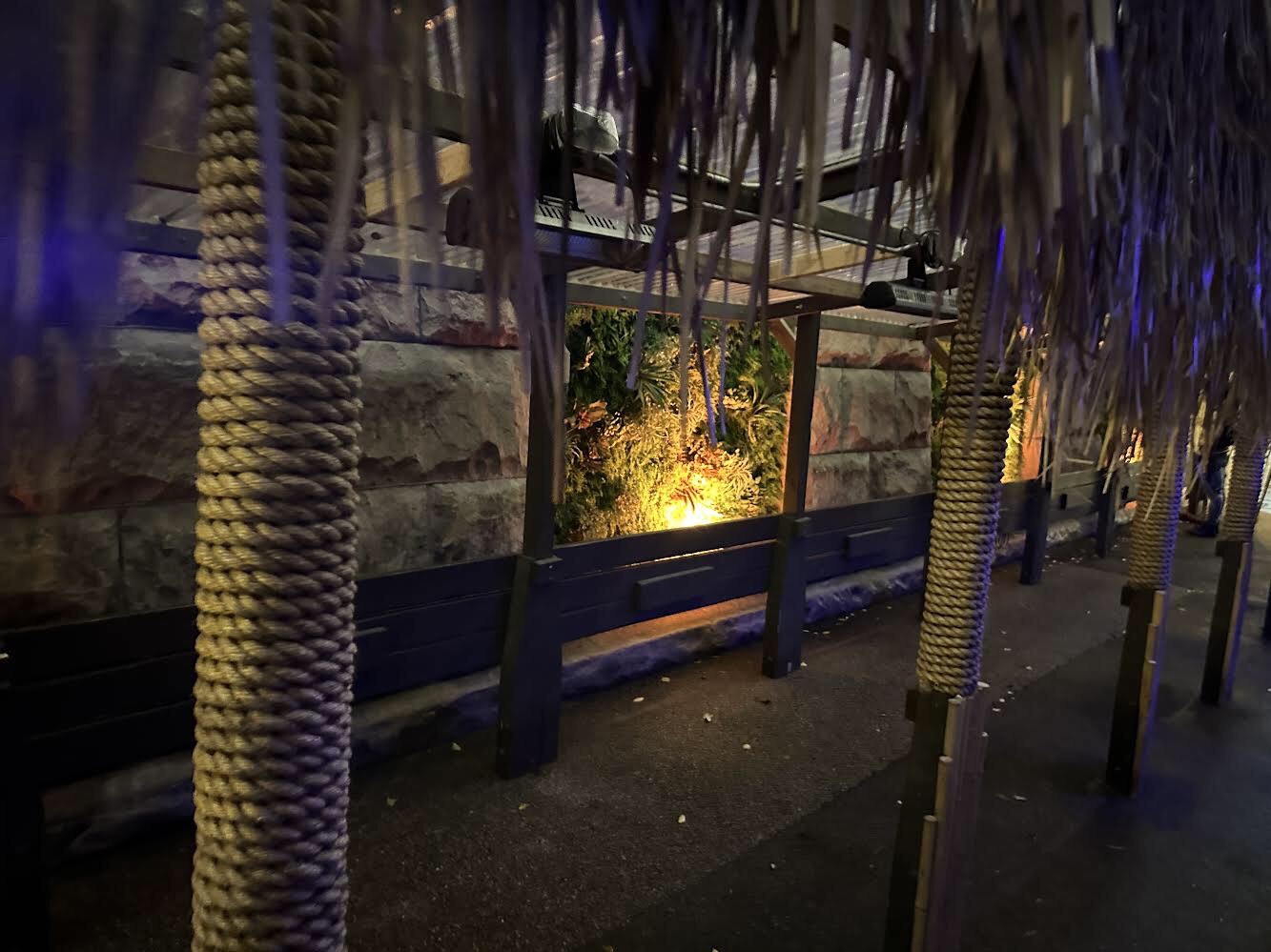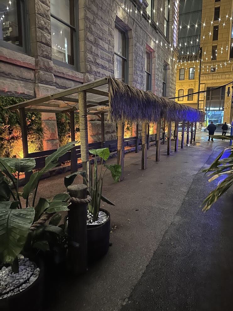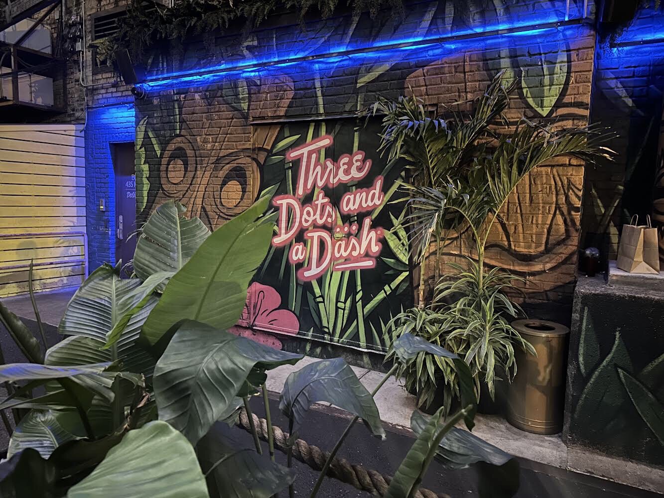 However, as we sat there—music blaring with people who seemed so out of place at a tiki bar—it finally dawned on me. Three Dots and a Dash wasn’t really a tiki bar. Sure, it has tiki cocktails (all nicely presented) and tiki munchies. It even has thatching over the bar. But Three Dots and a Dash was really a nightclub disguised as tiki bar.
