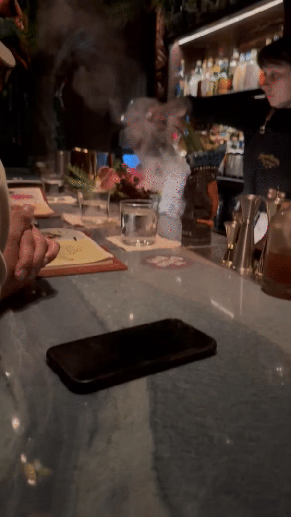 “A nightclub disguised as tiki bar”….perfect description of Three Dots and a Dash! I enjoyed myself there and thought the service, drinks, and food excellent. But if you compare it to say, Smuggler’s Cove or Pagan Idol for decor/ overall vibe, it’s lacking. I would actually much rather visit Kaona Room here in Miami (which has become one of my all time favorites).