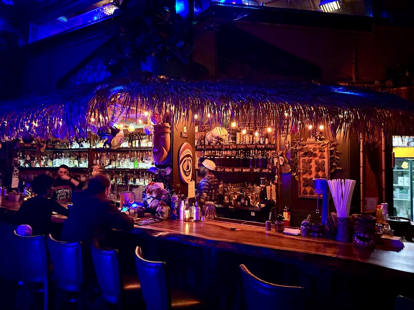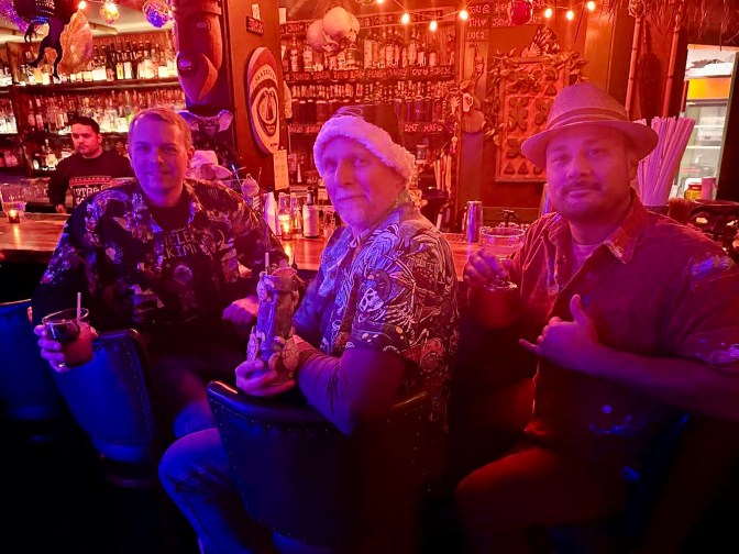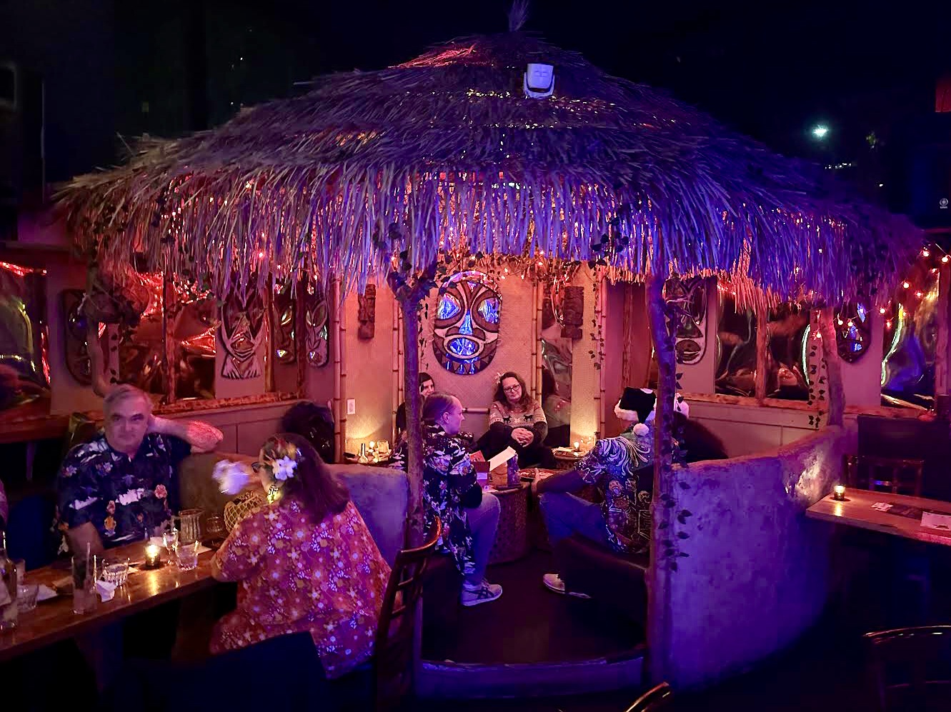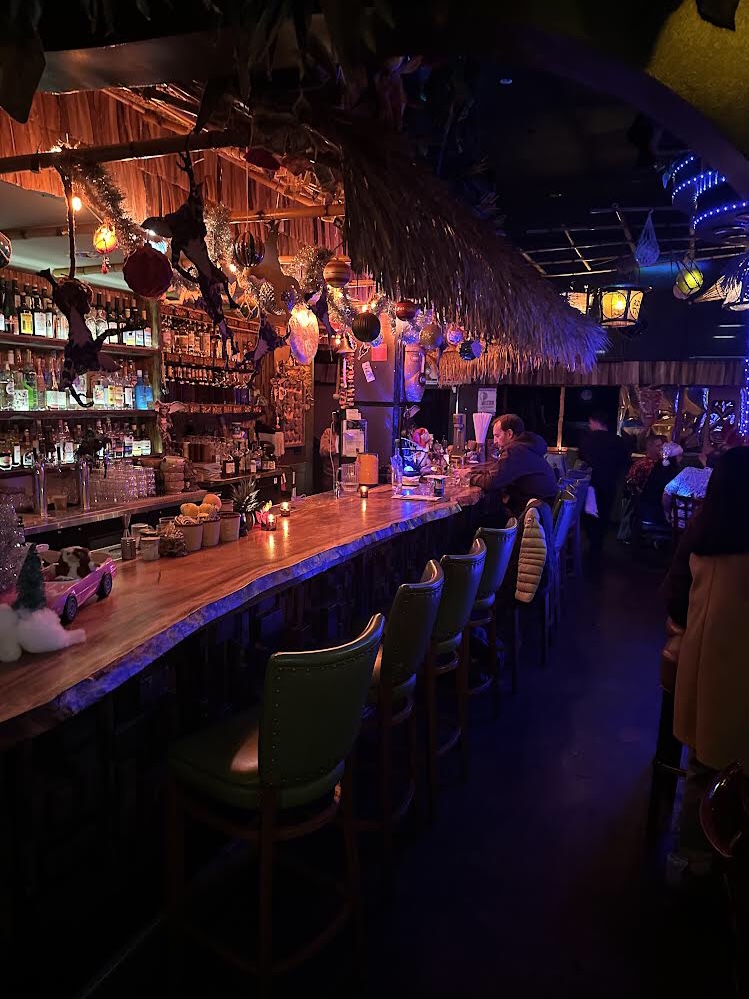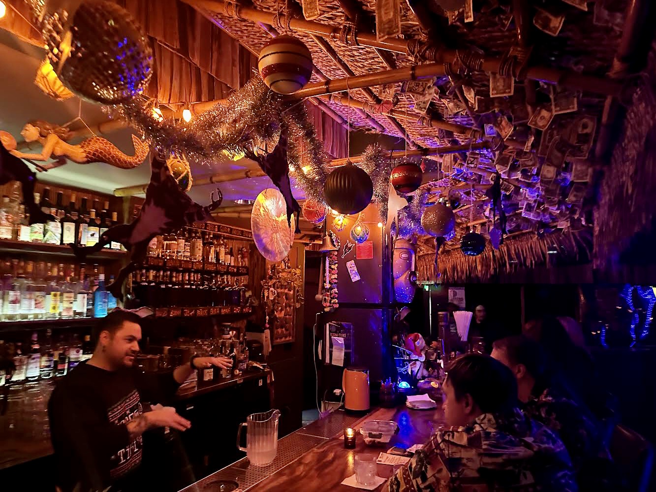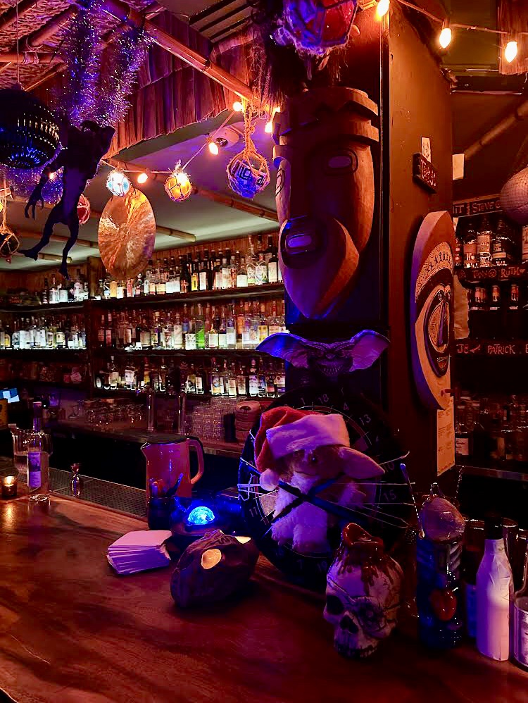 The Oakhana was having a holiday meet up this past Wednesday night at Kon-Tiki. Kevin was going to that. Great! Going would enable me to see Kevin again—but also let me fully experience Kon-Tiki. I had been to the bar before a couple of times. (The first visit had been brief. It was not long after it opened. I had been with friends then. I had been too engaged in chatting and catching up with them to really take in the bar. I didn’t even bother to take pictures. The next time I attempted a visit was years later. However, on that night, I found myself walking into something else… Chuntikis had taken over for the night, offering a unique—but decidedly not typical—evening at the bar.) I really needed to give the place a proper visit.