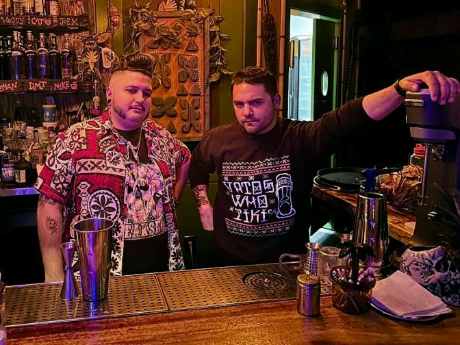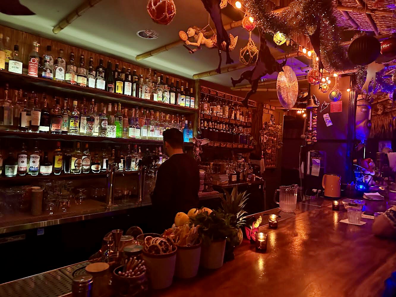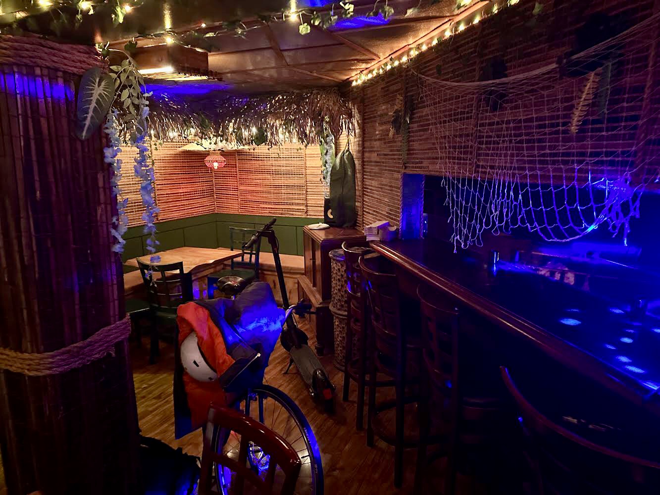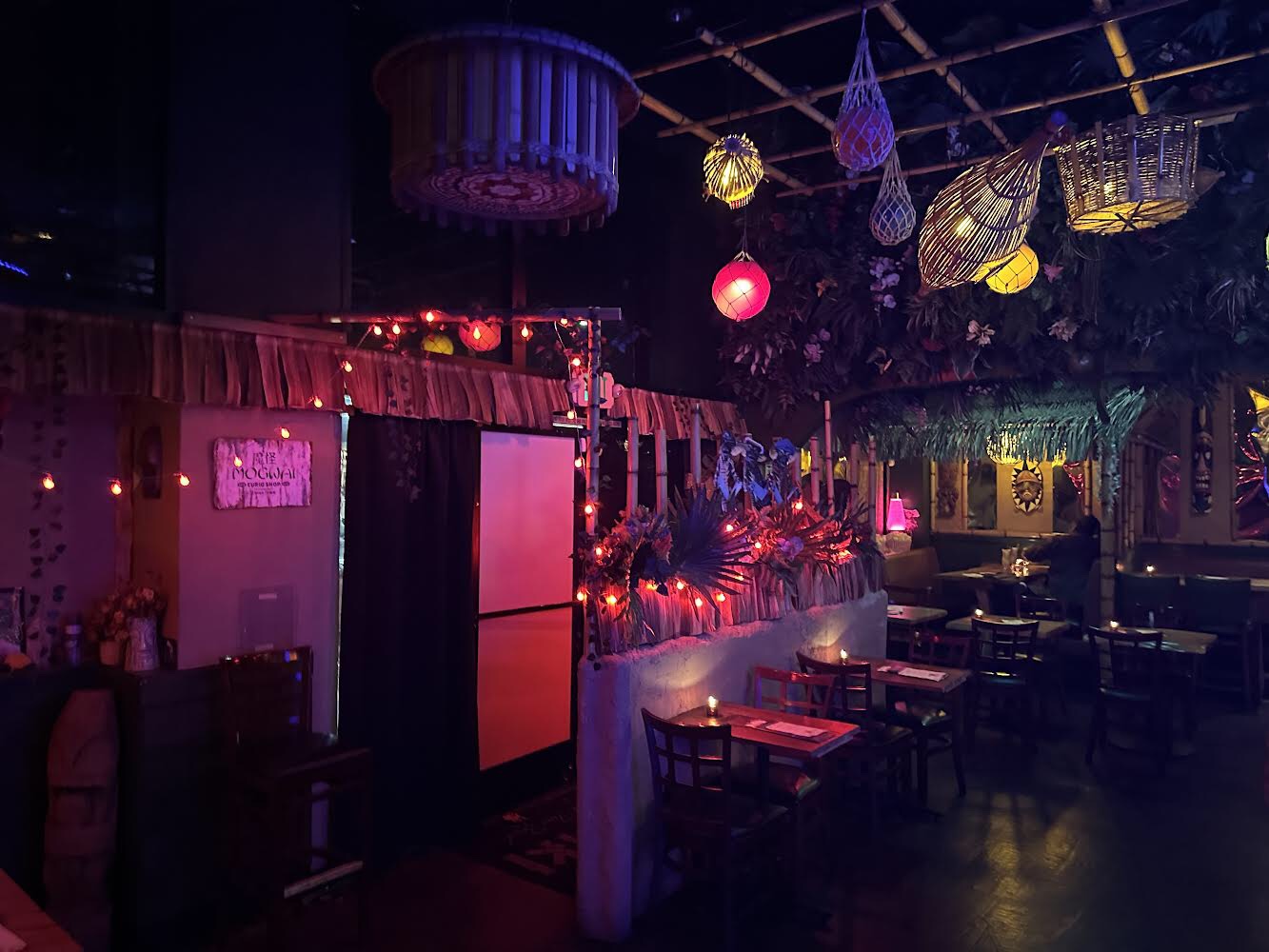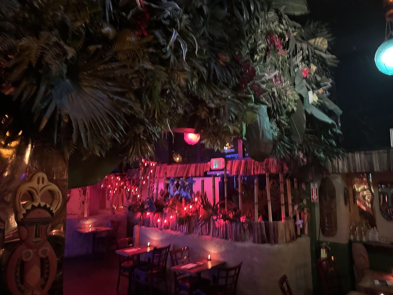 The Oakhana was having a holiday meet up this past Wednesday night at Kon-Tiki. Kevin was going to that. Great! Going would enable me to see Kevin again—but also let me fully experience Kon-Tiki. I had been to the bar before a couple of times. (The first visit had been brief. It was not long after it opened. I had been with friends then. I had been too engaged in chatting and catching up with them to really take in the bar. I didn’t even bother to take pictures. The next time I attempted a visit was years later. However, on that night, I found myself walking into something else… Chuntikis had taken over for the night, offering a unique—but decidedly not typical—evening at the bar.) I really needed to give the place a proper visit.
