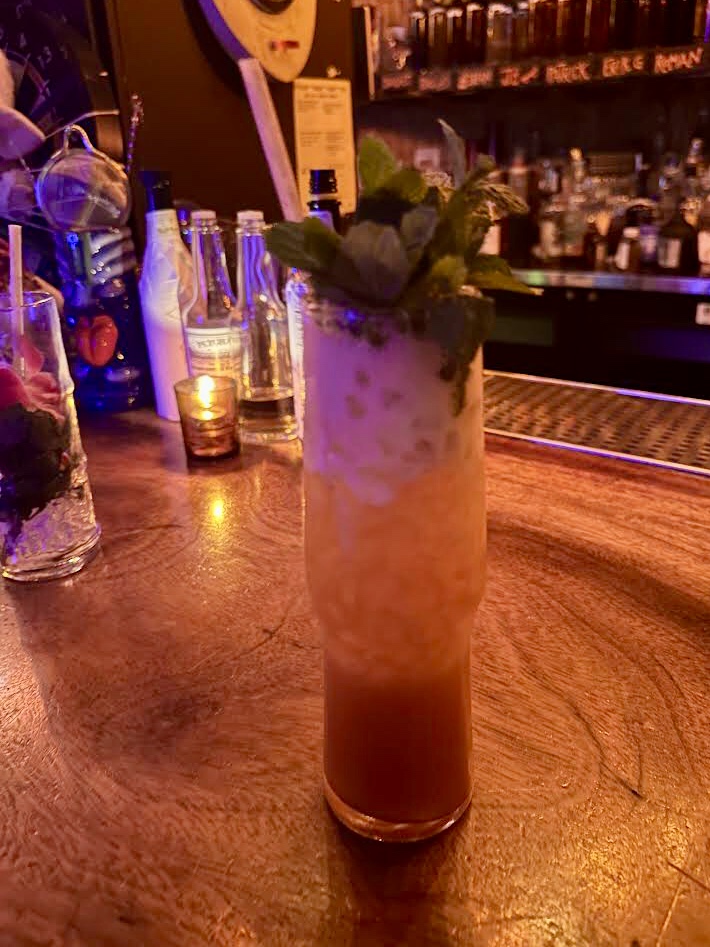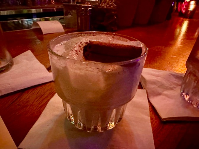 As the menu reads, the Coquito consisted of “Puerto Rican rums, coconut, spices, and more rum.” There was also some cream or milk in it. After my milder first two drinks, the first sip seemed a bit stronger than expected. But I was soon sipping away on this cool, coconut-y wonder. It didn’t last long at all.