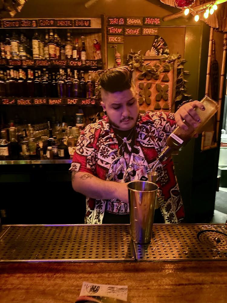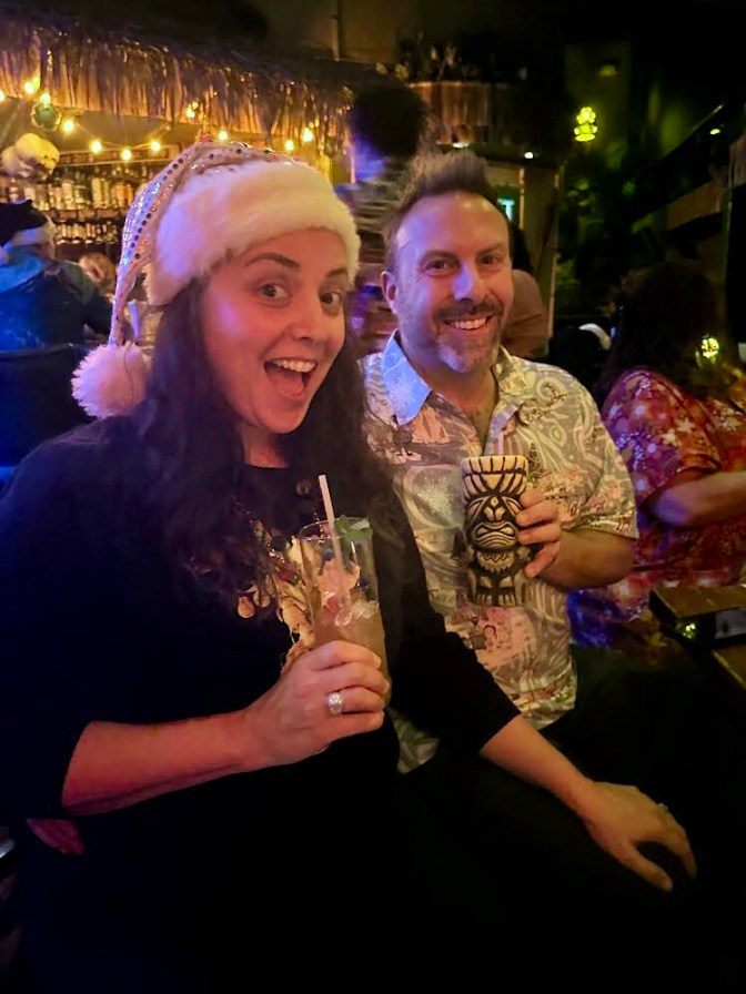 I was asking Carlos for his opinion of the various rum-based cocktails, when this person in a shiny Santa hat walked up next to me and asked if I was a “tiki tourist.”