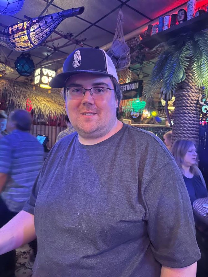 As I sipped, I perused the restaurant’s menu and watched the bartenders in action. Kimmy was wearing a cool T-shirt featuring tiki drinks in a spiral. Kimmy, I found out, was one of the owner’s sisters. Jordan was wearing little devil horns on her head. She’d been a customer of the place for some time before getting a job there. Both women had learned their remarkable bartending skills while working there. Ha! They were pros by the time I’d gotten there, and their work seemed effortless. But they were very busy.