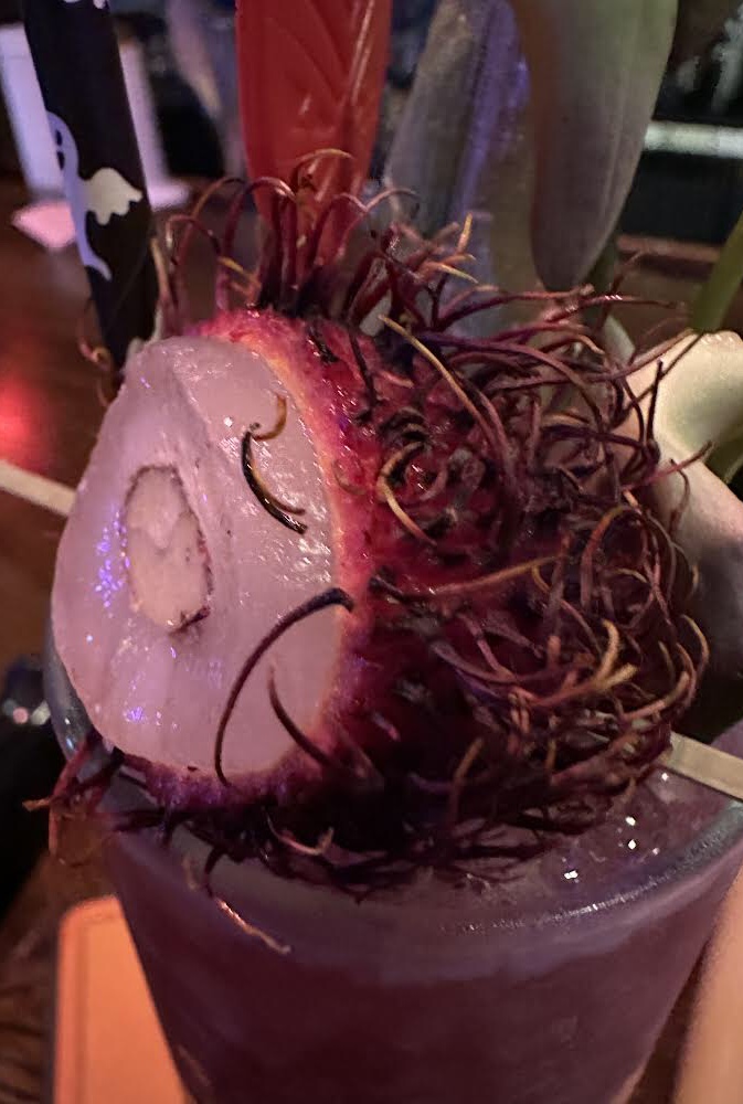 The Grim Reaper was surprisingly tart and sweet at the same time. It was a blend of rums mixed with berries, citrus, and cranberry bitters. It was garnished with what looked like a creepy eyeball of sorts, but was actually a slice of the rambutan fruit. How fun and clever!