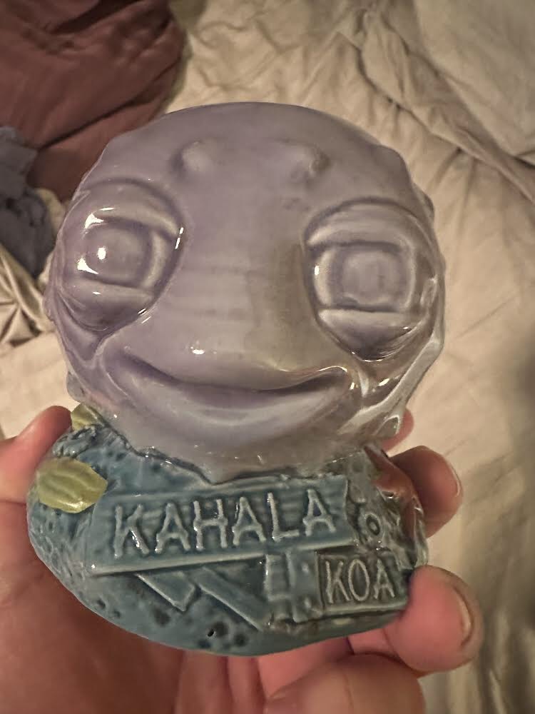 The Kahala Koa mug features a cartoon-y blue-ish fish. This actually makes sense, as kahala is a type of fish. Koa has several meanings, but here I believe it means strong, resilient, or a warrior. Kahala Koa is proving itself to be as strong as its namesake. It’s had to swim upstream to make a name for itself in the tiki world—and has done a great job.